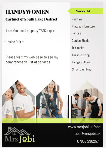 Our designers create for your Mrs Jobi business, a specific logo for your own use. Ideal if you need any additional local marketing you may want to do in the future. For example, doing a free post on Facebook local groups or the Nextdoor app (2 great ways to get additional free local work leads)