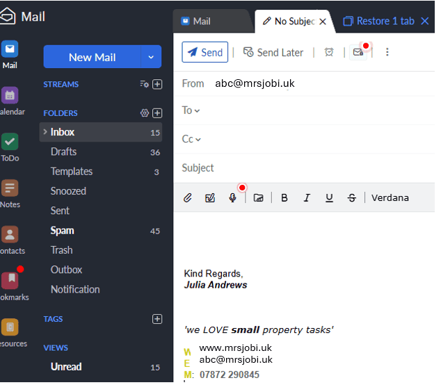 * to your own dedicated email ‘you@mrsjobi.uk’